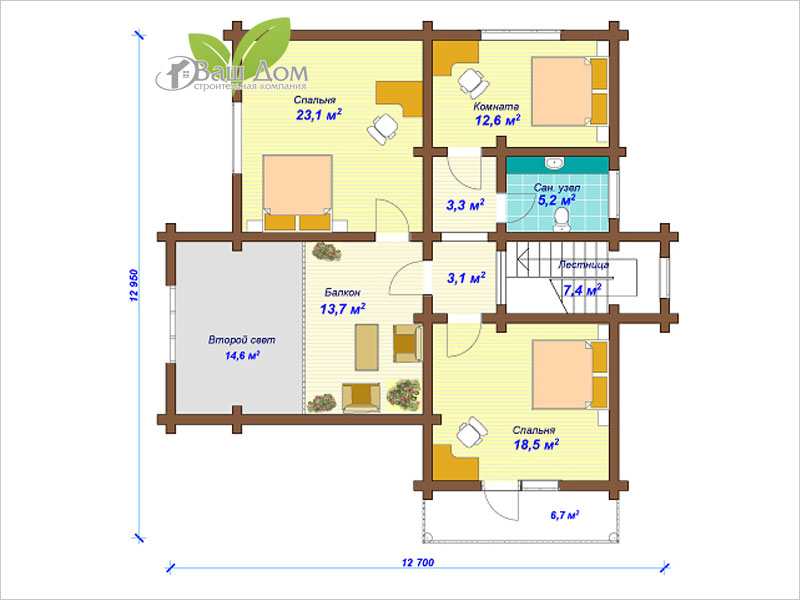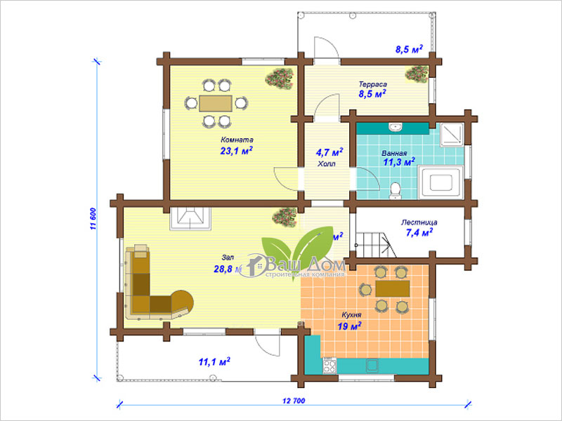 12,7х11,6 м