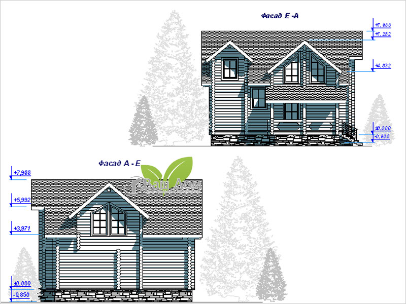 Большой загородный дом из деревянного сруба с площадью 215,2 кв. м предлагает все необходимое для постоянного проживания. На первом этаже устроена открытая веранда у входа, предусмотрена котельная, санузел, объединенная гостиная кухня и спальня с гардеробной. На мансарде запланированы две спальни с балконом, большой холл, санузел, выделено место для домашней библиотеки и мастерской.